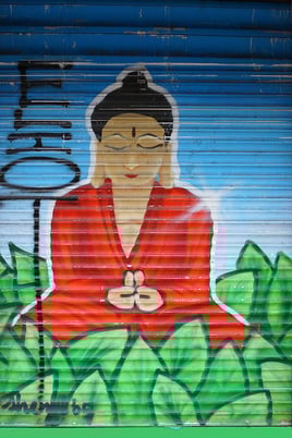 Bouddha en méditation - Street art, Barcelone